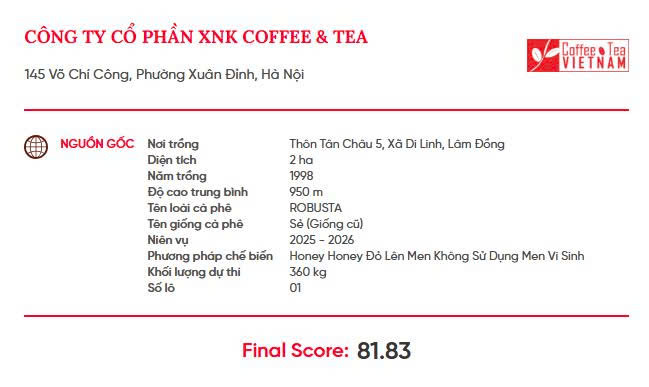 Vì vậy, 81.83 điểm là minh chứng rõ ràng cho chất lượng cà phê của Coffee&Tea VN.